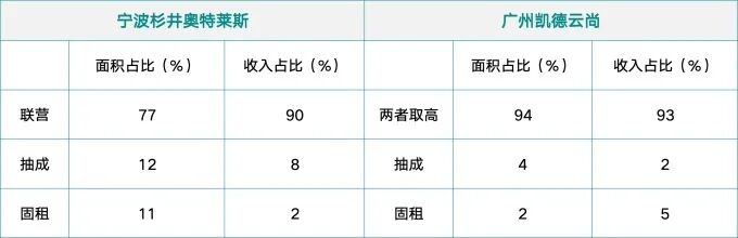 第一,在奥特莱斯经营模式中,无论是面积占比还是收入占比,联营模式都占绝对的多数;而购物中心因为是租赁制的,这一项无法直接对比;百货只能从报道中推导出结论。