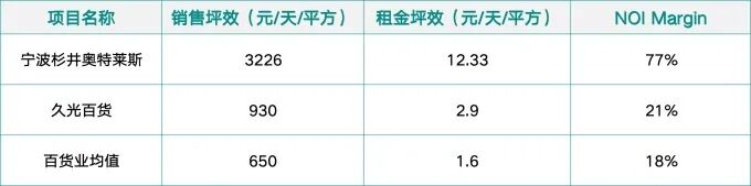 从已经发行了REITs的三个奥特莱斯项目的租金坪效这一最能反映经营业绩的指标来看: